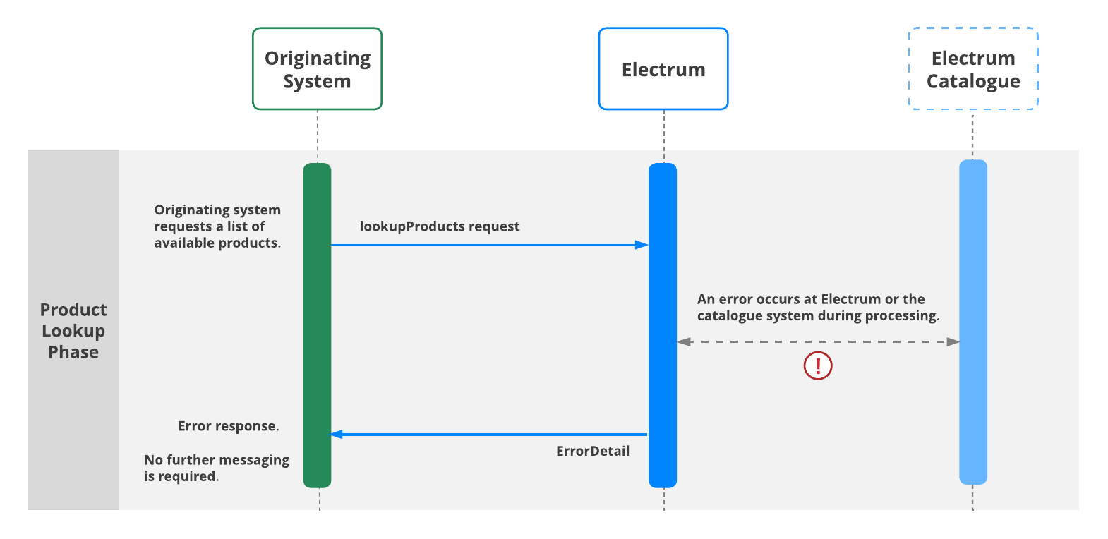 GETcall to the/productsAPI endpoint lookupProducts. - An error is encountered at Electrum or the Service Provider.