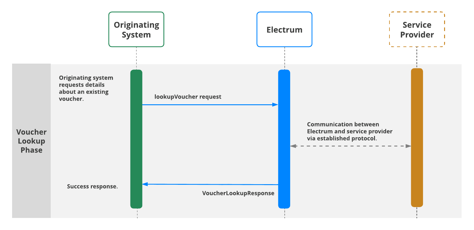 The product lookup phase is a transaction consisting of a call to obtain product information about the available products. This information is used to process voucher provision requests for that service provider.