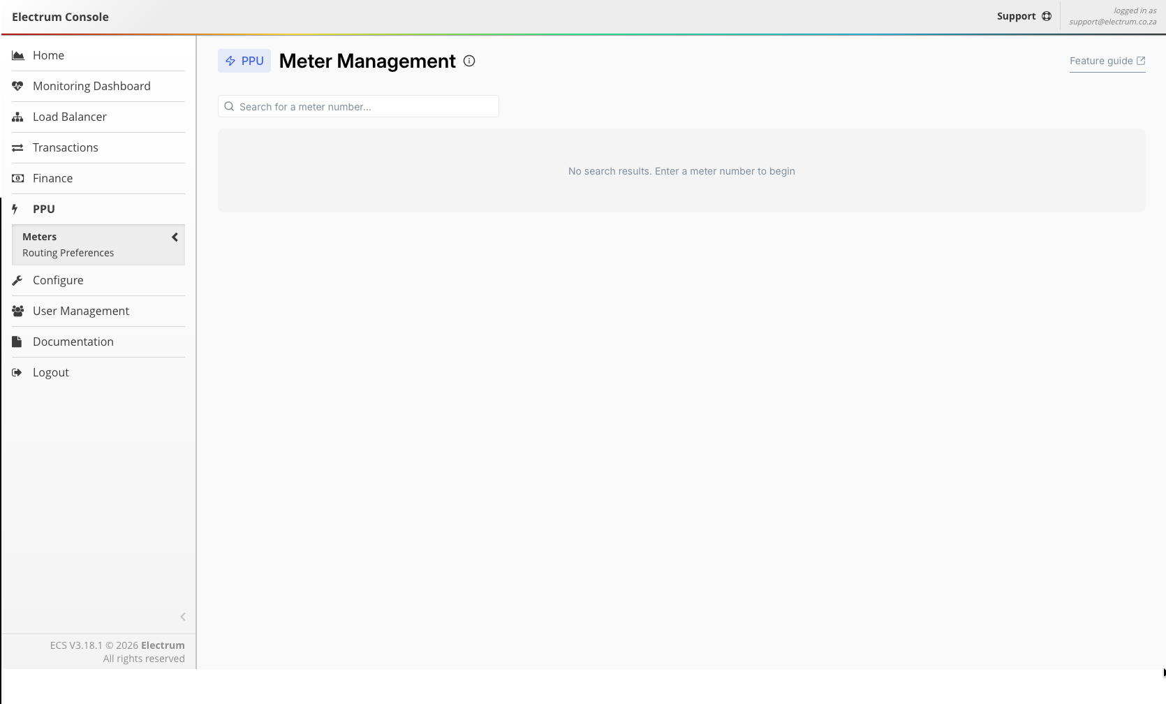 Select the PPU tab on the left sidebar and then the Meters tab below it. You will see the Meter Management page.