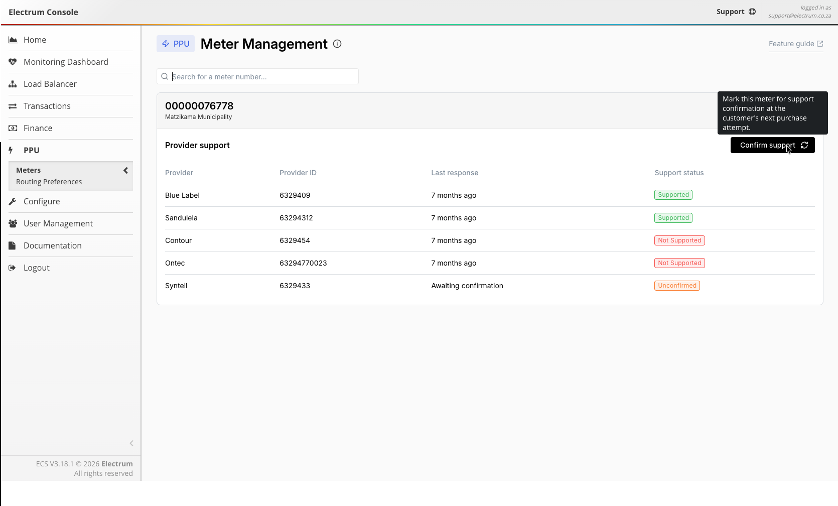 - If that meter was blocked during a previous purchase attempt, and a provider who previously responded Not Supported or Unconfirmed now responds Supported, then it means that the meter will be unblocked and the customer will be able to buy a PPU token.