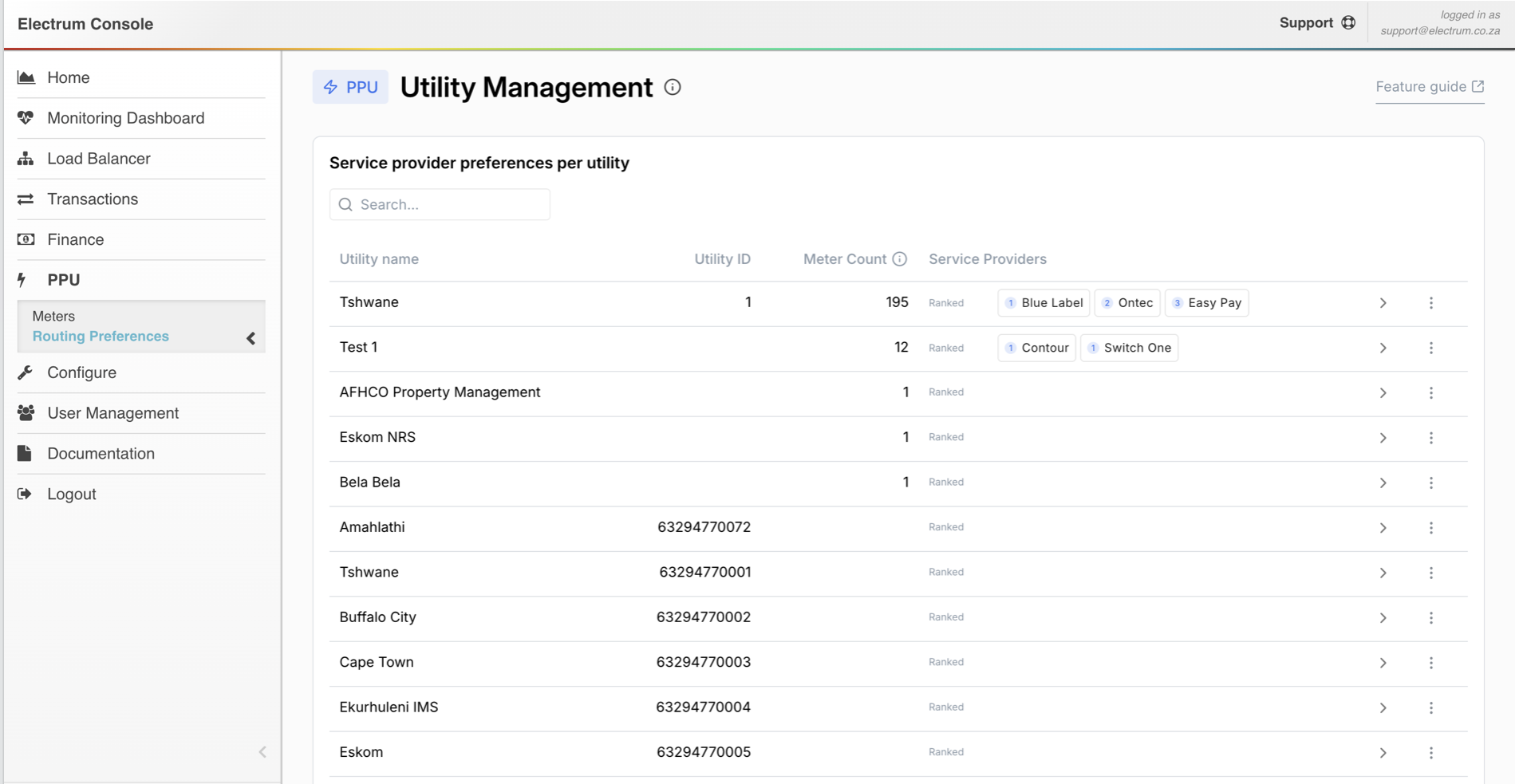 - You will see a list of utilities (e.g., Tshwane, Eskom, Cape Town). You can search for a specific utility.