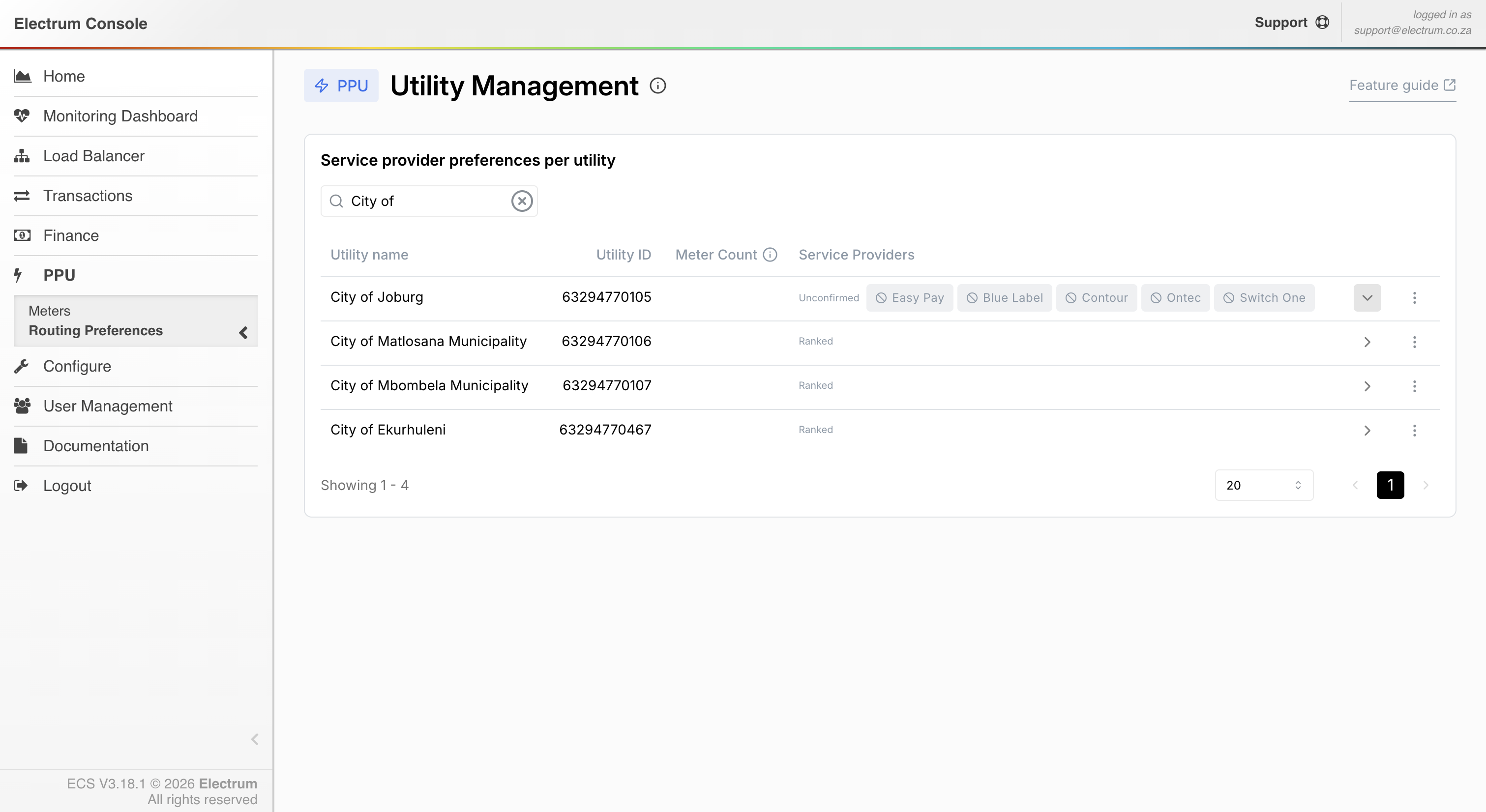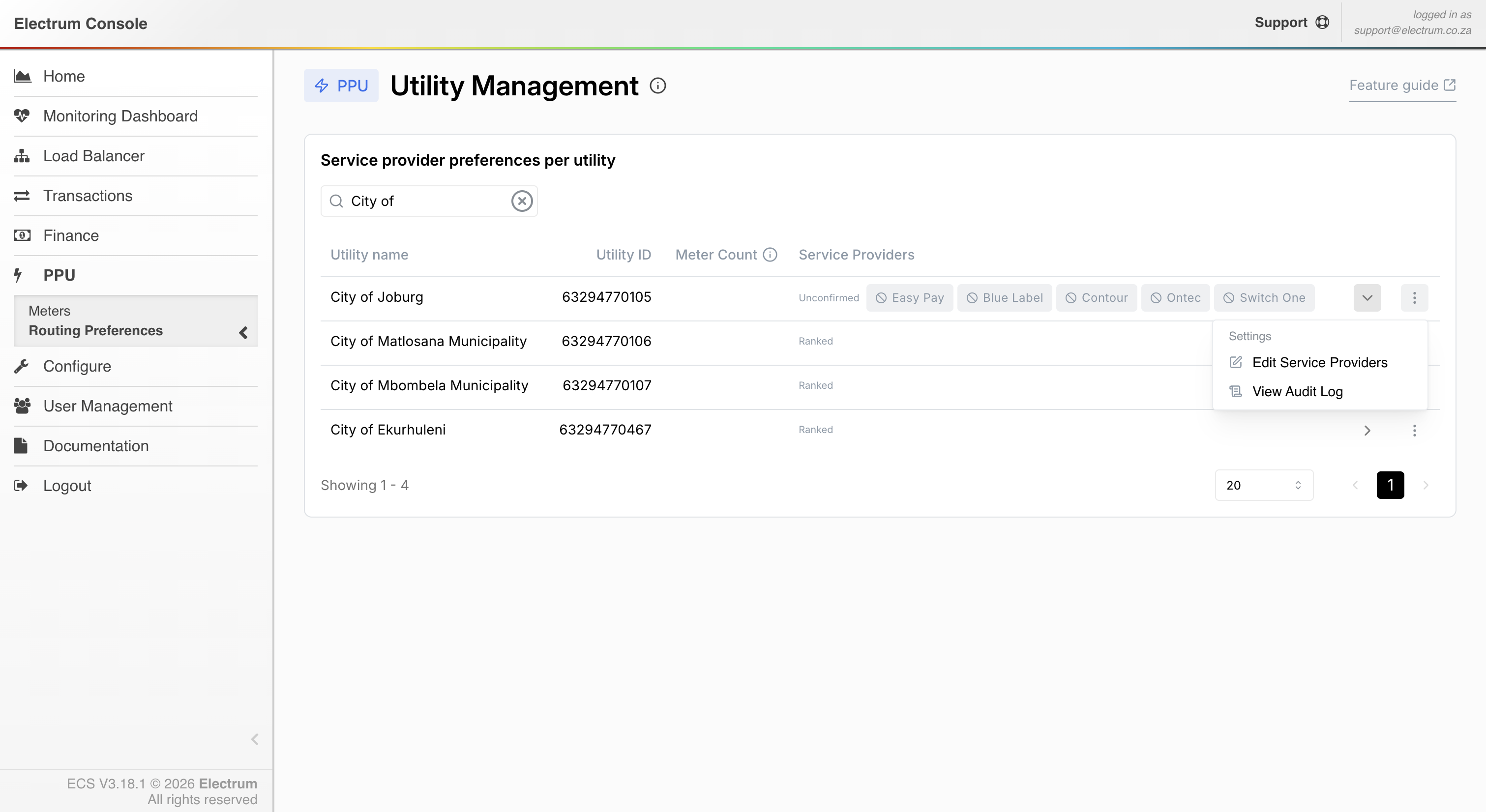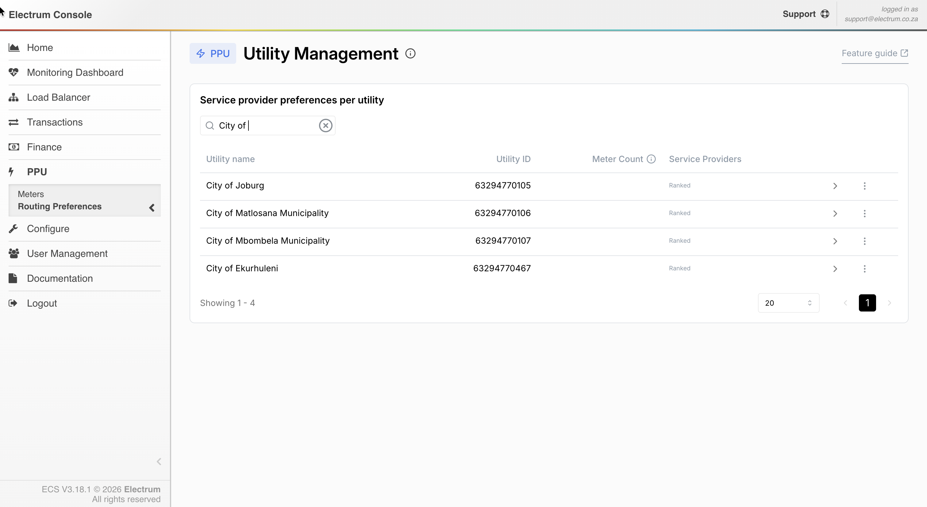 Find the utility you wish to manage (e.g., City of Joburg) from the list of utilities on your screen.