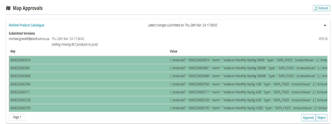 A reviewer who rejects a change must provide an explanation of the reason for the rejection. If your changes have been rejected, return to Retool and resolve the specific issue the reviewer identified. This is crucial as it ensures that Retool is kept up-to-date with what is currently implemented by the Electrum Catalogue. Once you make the change, re-download the newly generated configuration files (both the JSON and CSV formats). Re-upload these new files to the Config App to ensure Retool maintains perfect synchronisation with the recently implemented catalogue.