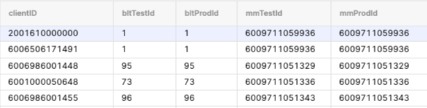 clientId,bitTestId,bitProdId,mmTestId, andmmProdId, with the product/biller ID your system uses. Accurately map this ID to the one the service provider uses to uniquely identify the same entity.