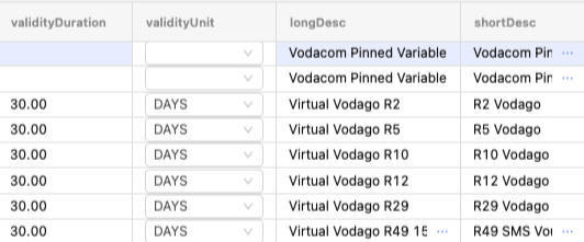 validityDuration,validityUnit,longDesc, andshortDesc.