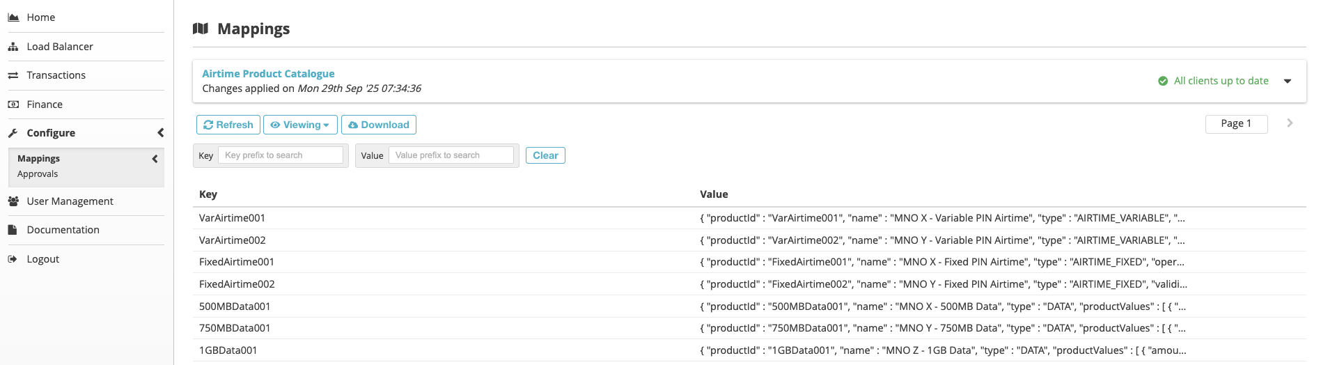 Product/Biller Management: This feature serves as the central place to maintain the list of products (e.g., airtime, digital vouchers) and billers that your system supports.