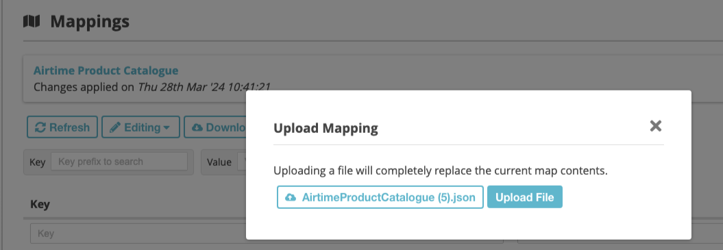 Upload the file (Example: Airtime Product Catalogue Map)